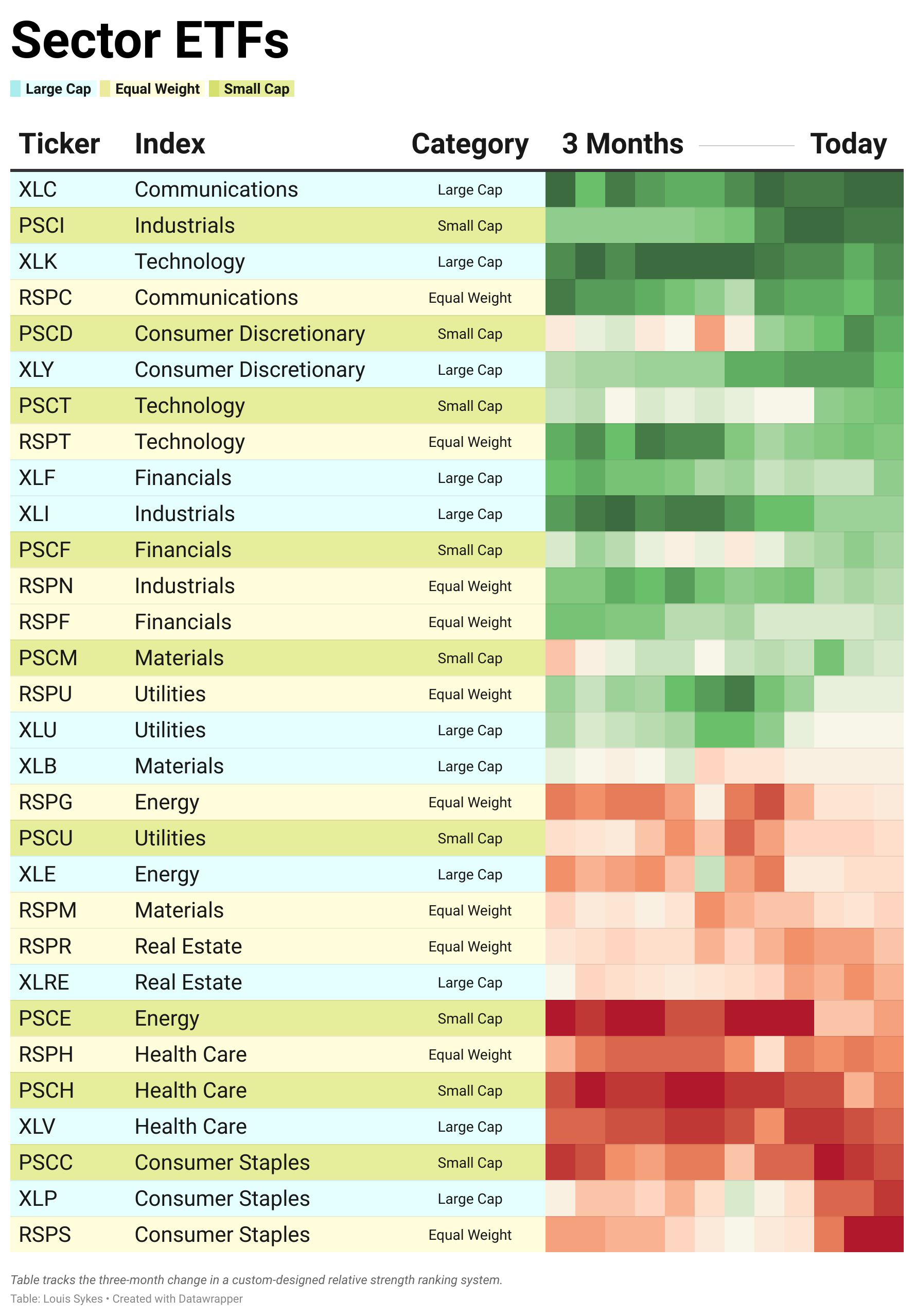 Across our sector universe, more small-cap sectors are beginning to flash green. That’s an encouraging signal—it tells us that beneath the surface, there’s fresh life emerging down the cap scale.