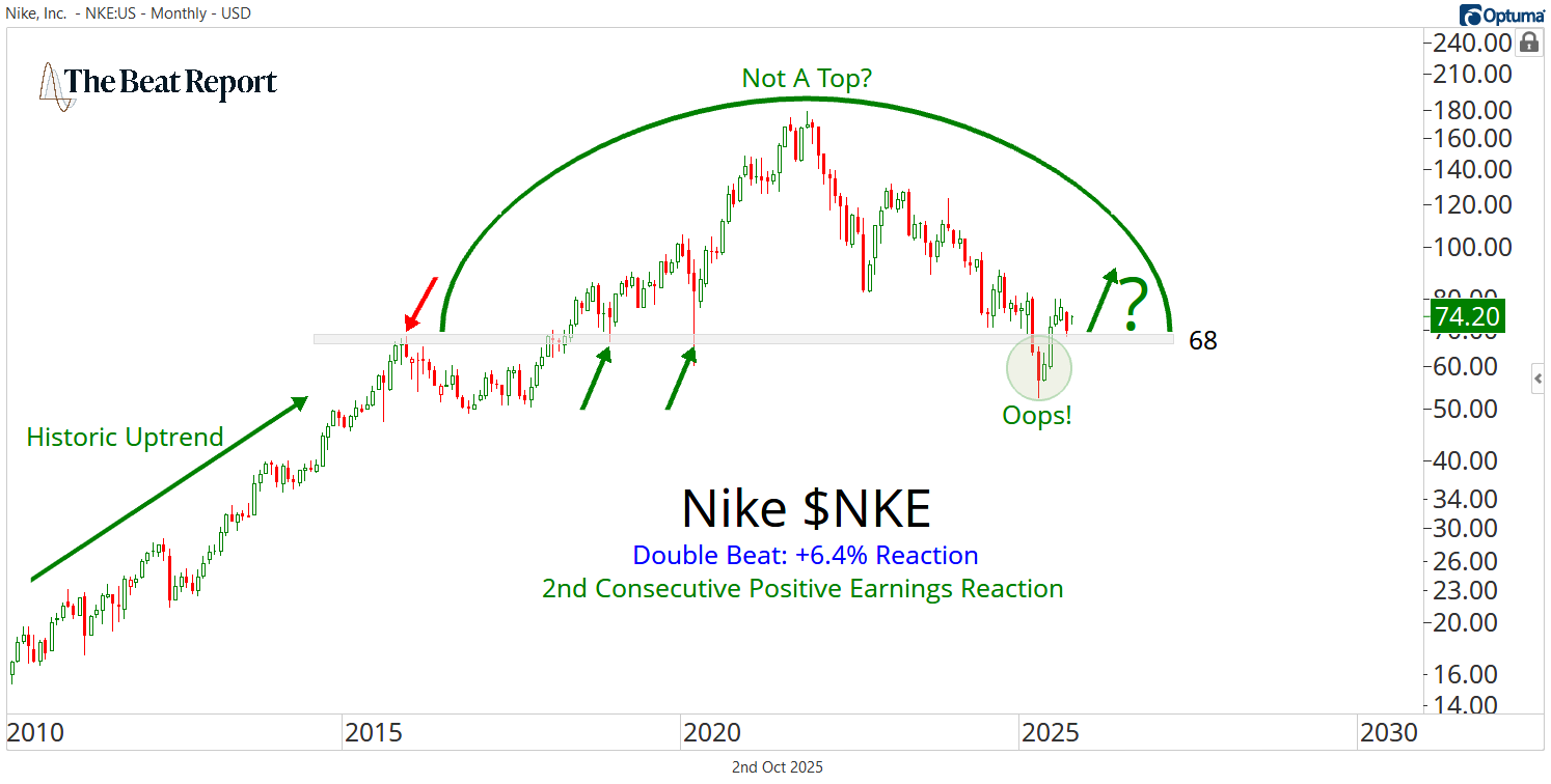 NKE had its second consecutive positive earnings reaction π₯