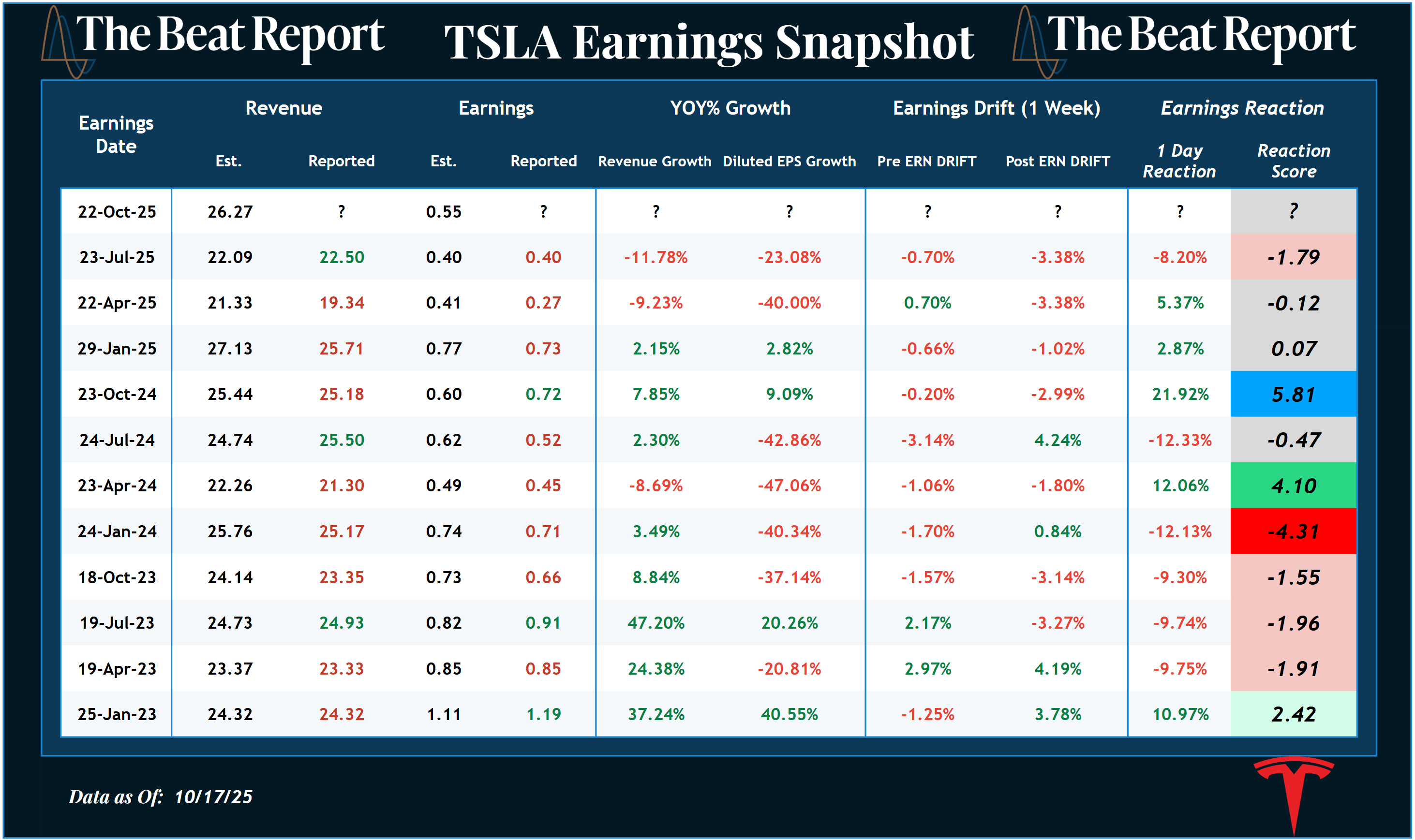 This time last year, Tesla had its best earnings reaction in decades. Since then, the stock has been rewarded for two of three earnings reports, and we have a feeling it's about to be rewarded for three out of four.