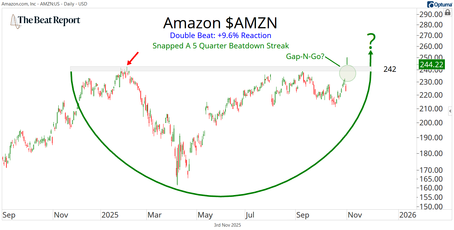 So long as AMZN is above 242, the path of least resistance will likely remain higher for the foreseeable future.