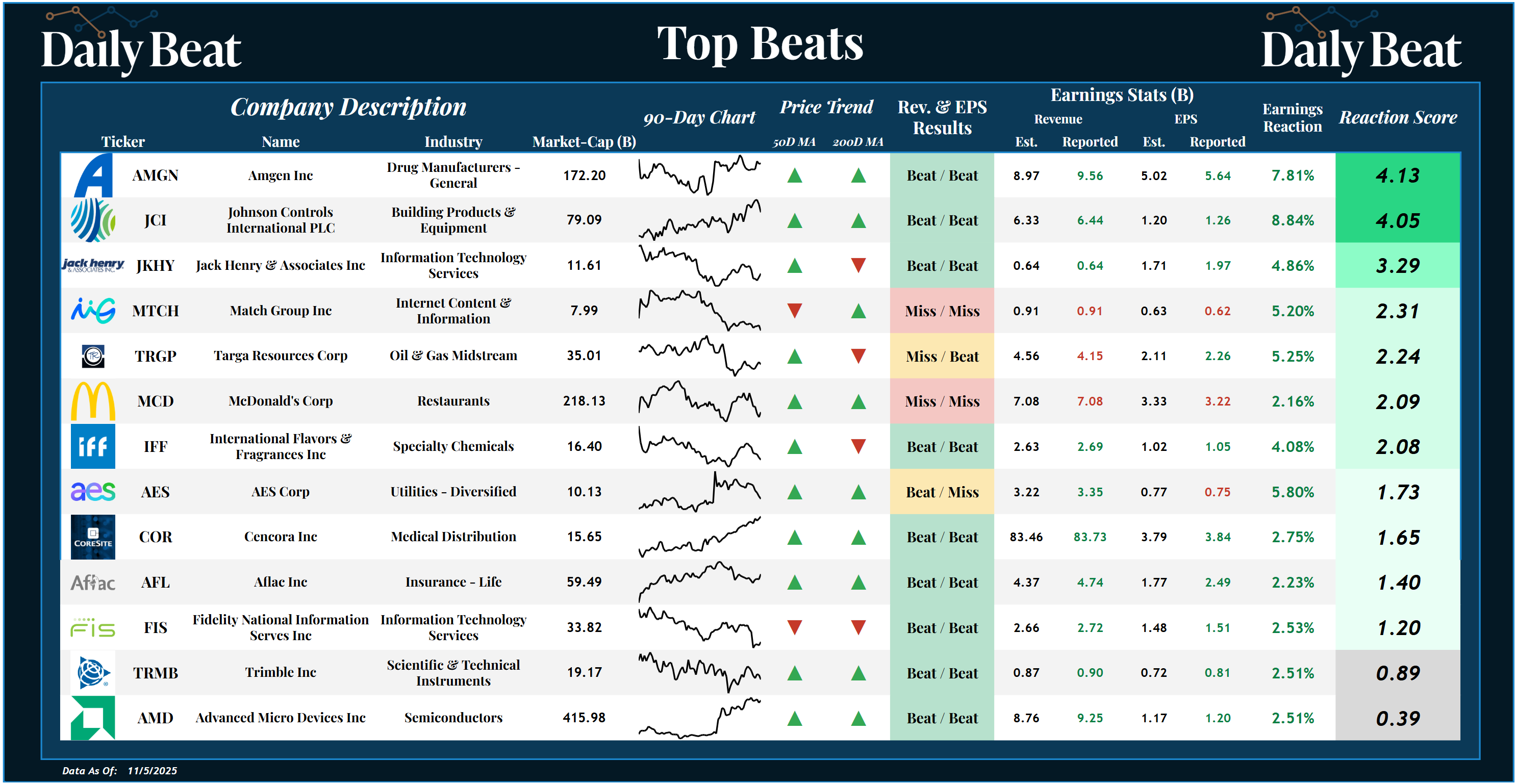 In the Daily Beat, we spotlight the most important S&P 500 earnings moves from the prior session - the winners, the losers, and the reactions that reveal what really matters to the market right now.