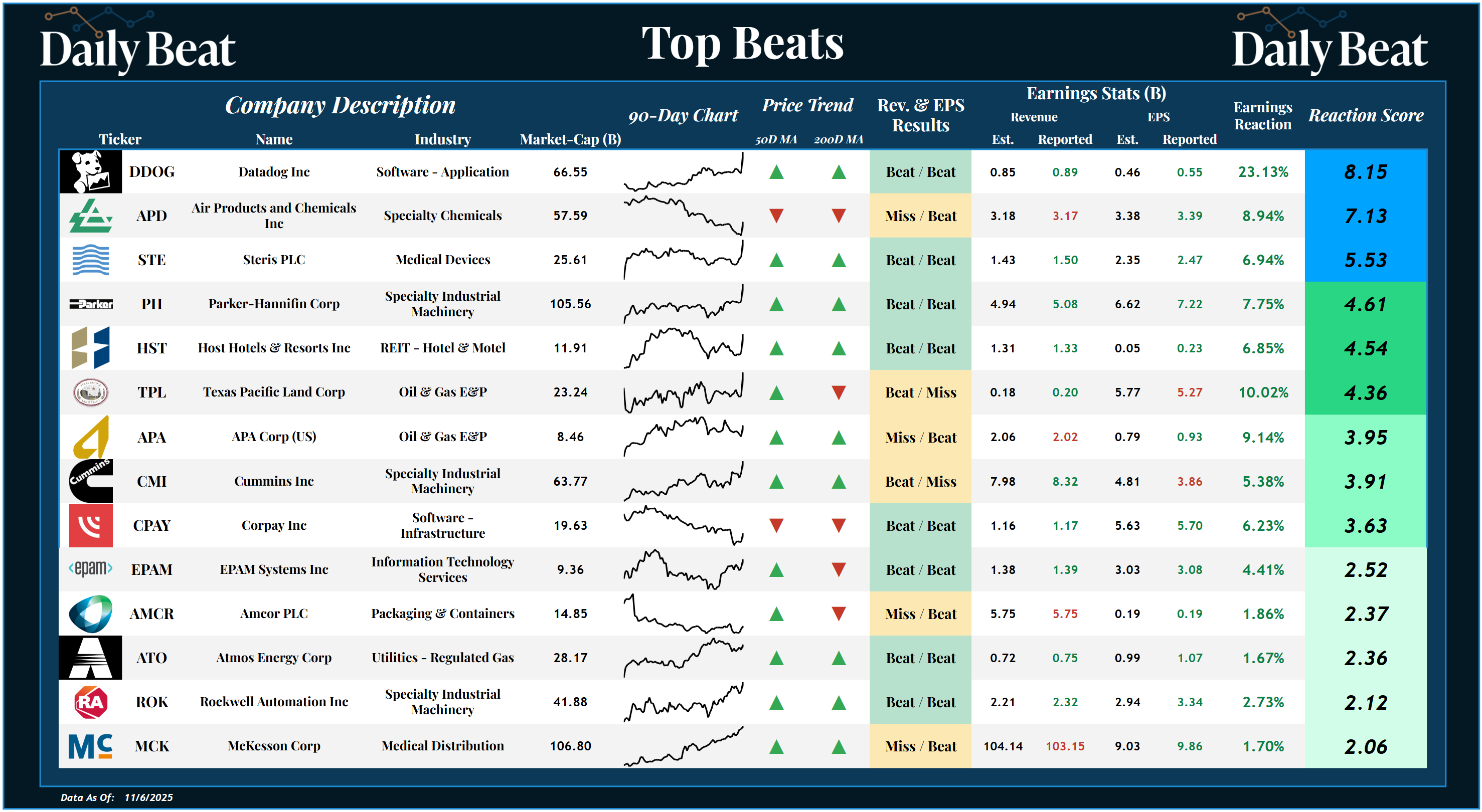The Daily Beat spots fundamentally strong stocks showing real momentum β a daily list built for traders who act on strength, not noise.