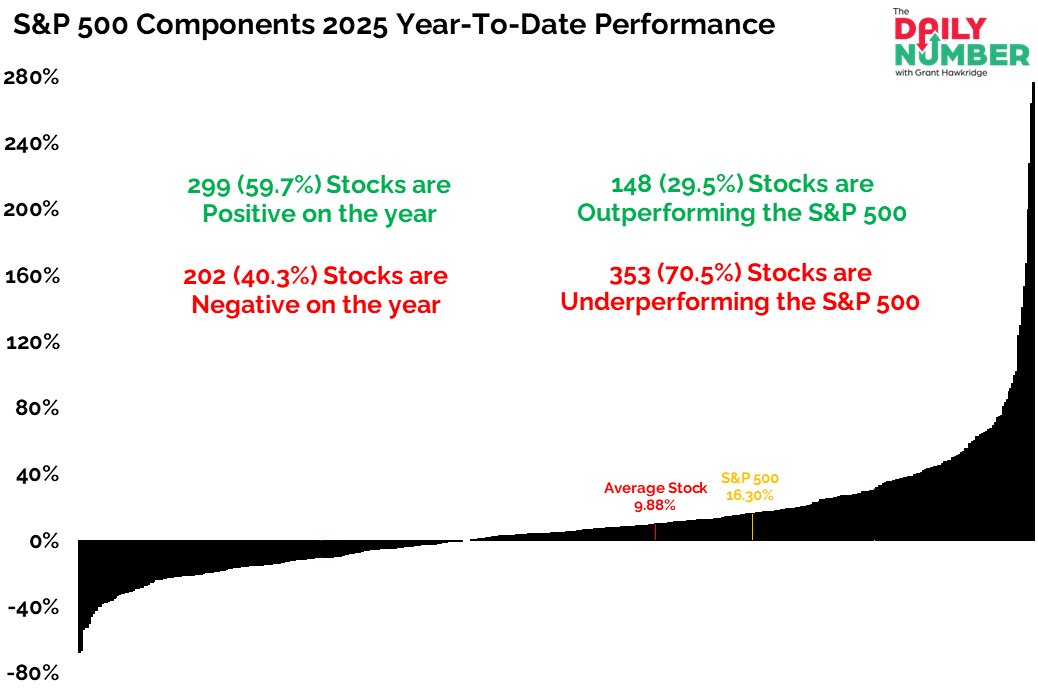 59.7% of S&P 500 stocks are positive this year. Most stocks are green, but participation still has room to grow.