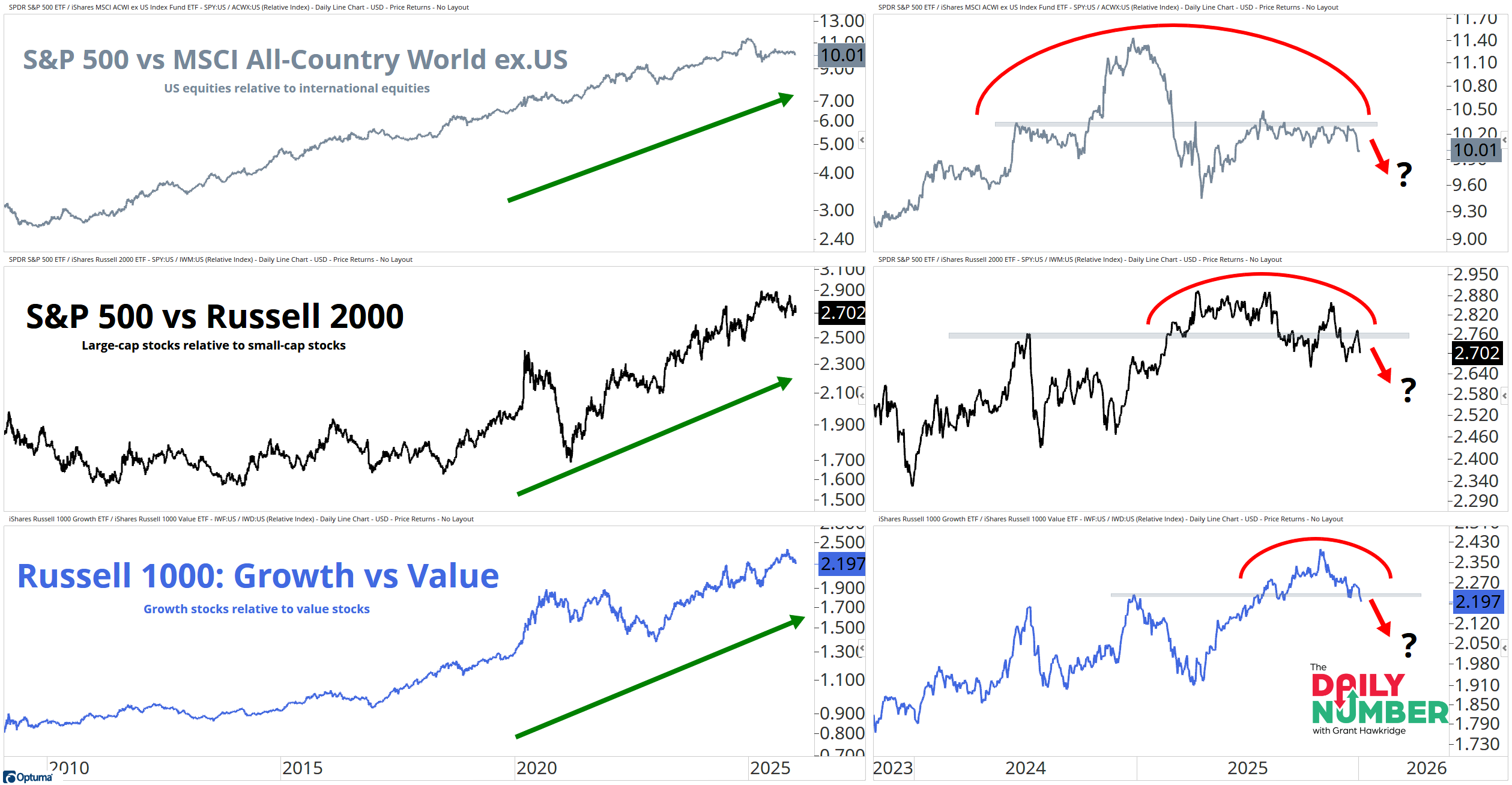From here, either these past leadership themes reclaim their levels, and the last decade stays intact. Or they remain capped and the market starts rewarding the other side of the trade.