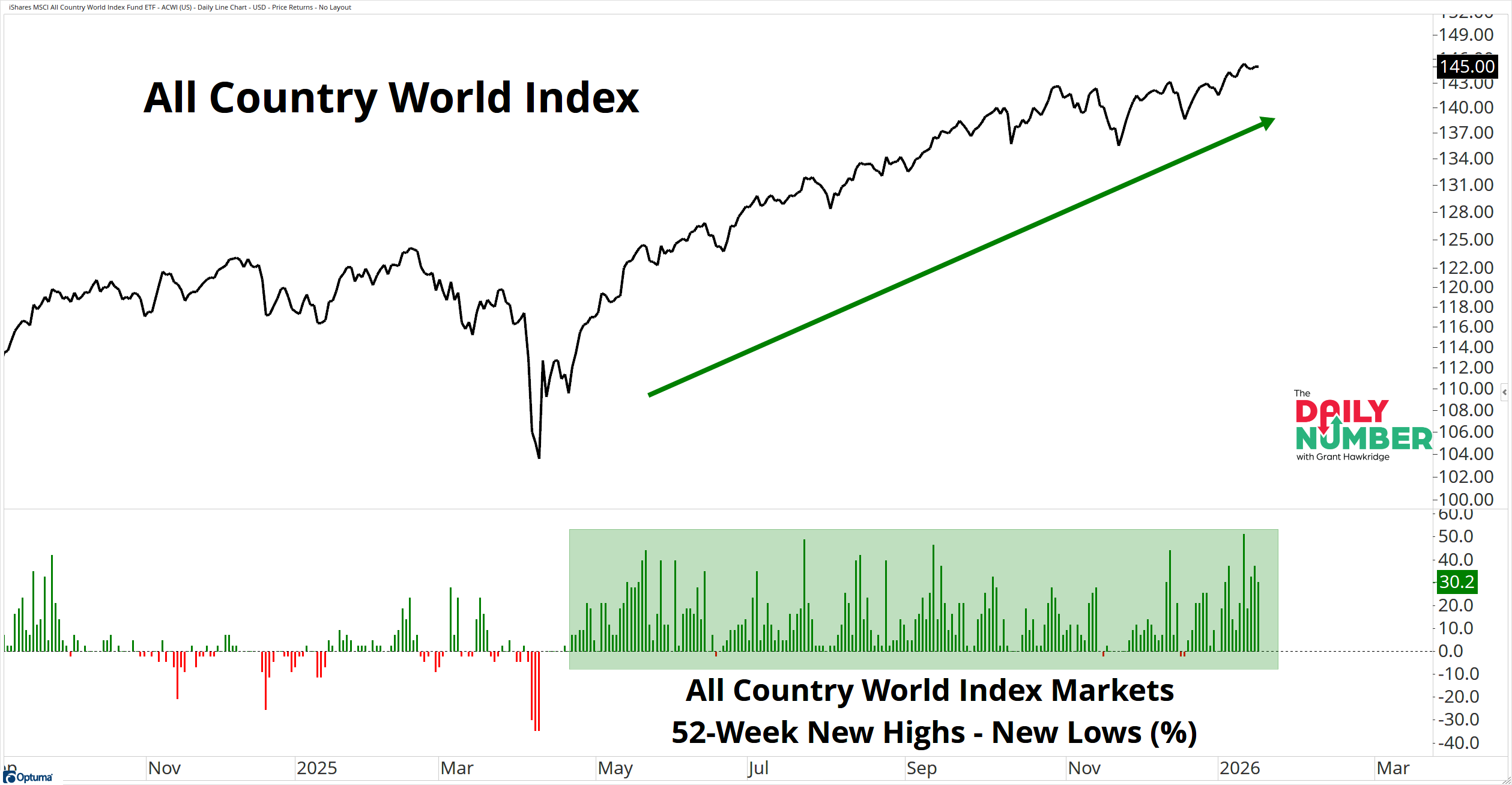 Global markets have posted more 52-week highs than 52-week lows on 166 of the past 187 trading days since April 22, 2025.
