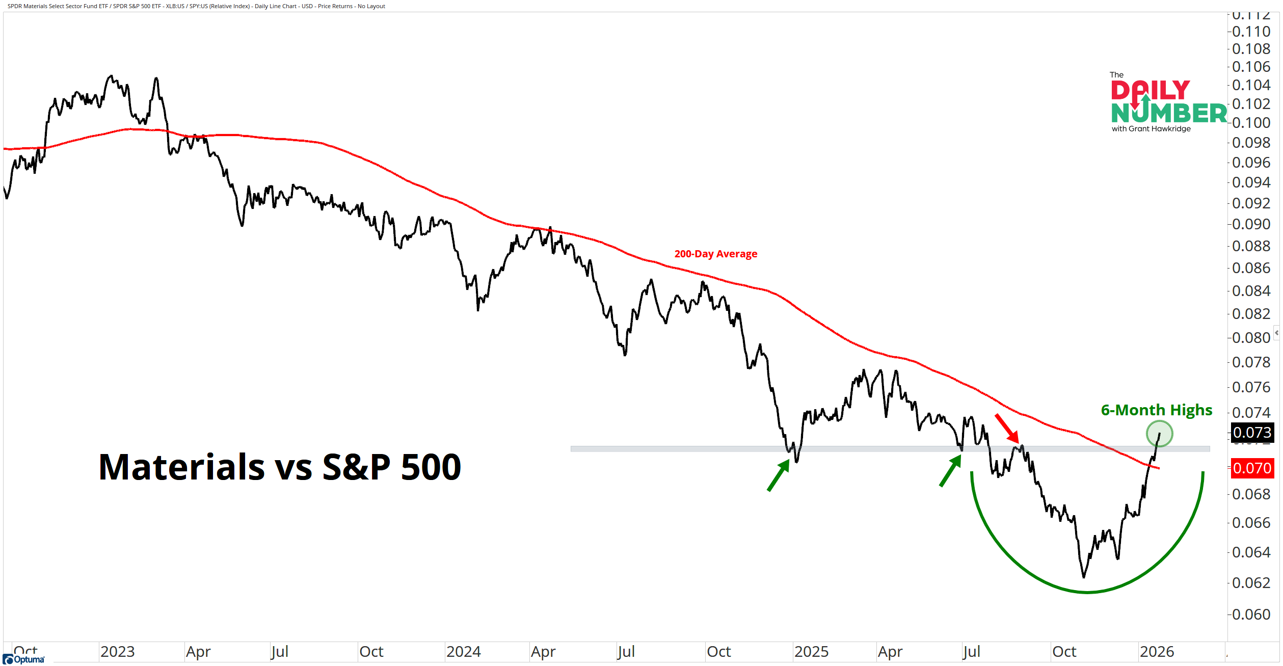 The Takeaway: Materials just printed a 6-month high relative to the S&P 500.