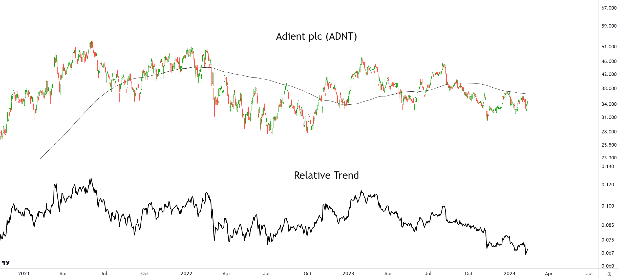 Given the lack of a defined trend, traders and investors should exercise caution when considering positions in $ADNT. It is important to closely monitor the stock's price action and volume patterns for any signs of a potential breakout or trend formation.