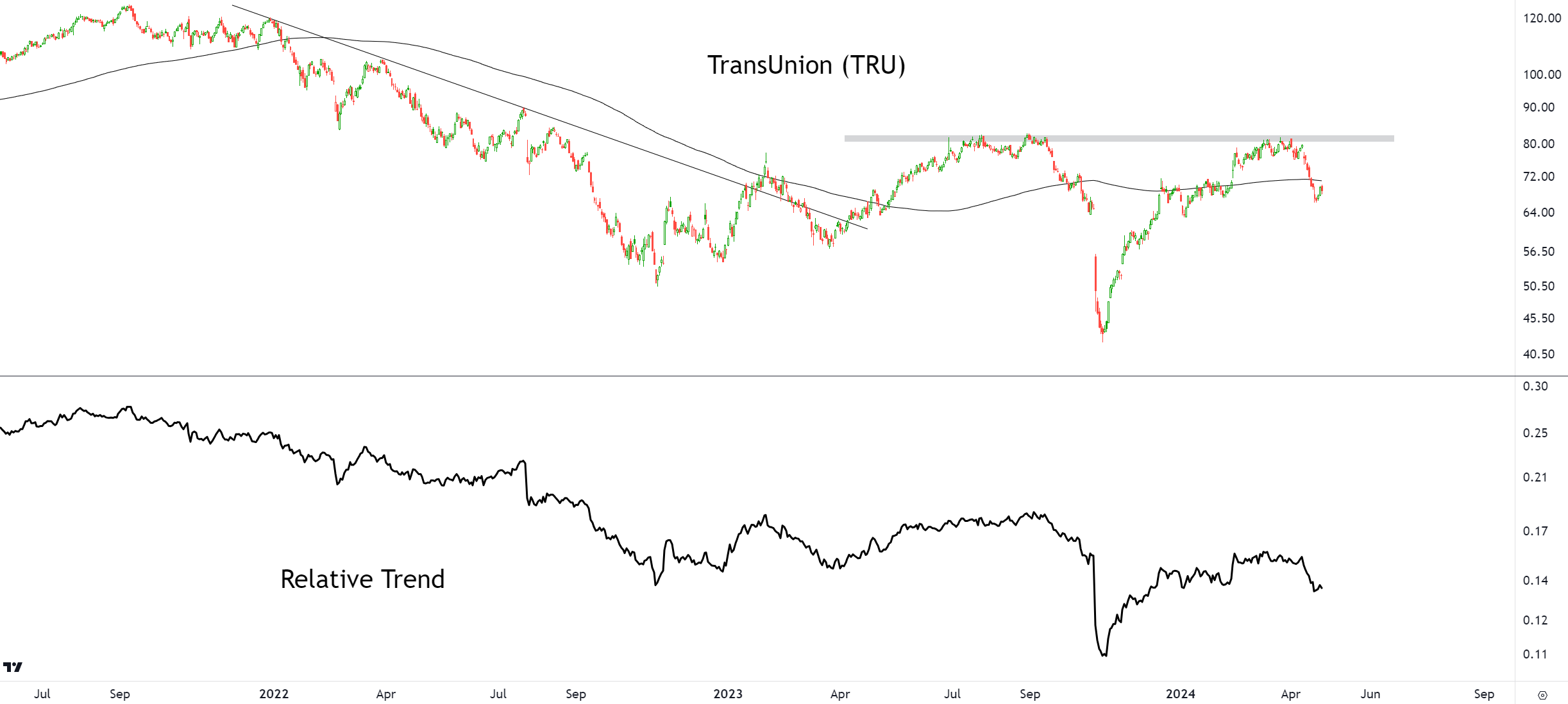 Recently, the stock of TransUnion has experienced a sell-off after retesting resistance levels. However, it is currently in the process of building a long-term base. This indicates that the stock is consolidating and preparing for a potential upward move in the future.